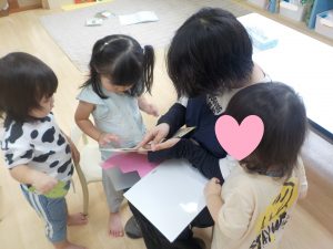 会が終わってからもペープサートに触れ、保育者がしていた誕生日会の真似をして体を揺らしたり歌を歌う姿にほっこりしました。