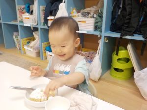 「今日は○○ちゃんのお誕生日会したからお誕生日ケーキだよ」と伝えると楽しみに準備を進める子どもたちでした!