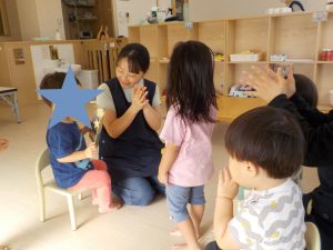 ほし組のお友だちは入園して初めてのお誕生会となり、いつもと違う雰囲気の中で