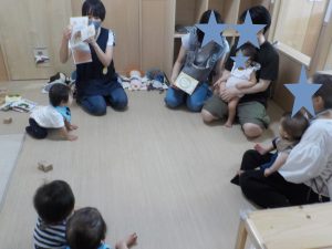 保育者がお話をしていると興味を持って近くに移動する様子があります。