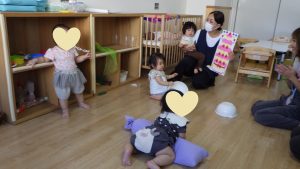 スケッチブックシアターでは色んな動物がドアから出てきて、最後にはお誕生日ケーキが届きました。ハッピーバースディトゥーユー♪を歌いながら、お誕生日のお友だちにお祝いの気持ちを伝えました。歌が好きな子ども達。日常生活の中でも季節の歌やリズムに合わせ、体を揺らしたり、手を振ったり、両手を合わせて叩いたり、声を出してみたり、自由に表現を楽しむ時間を沢山作っていきたいと思いました。