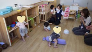 シリウス組では初めてのお誕生会になります。子ども達が自由に好きなことをして遊ぶ中で、お誕生会を始めました。保護者の方からは「最近の成長を感じたエピソード」を聞かせていただきました。まねっこ遊びが好きだったり、意思疎通ができるようになり、やりとりがより一層楽しくなったことを知りました。また、保育園での成長を感じたエピソードもお話させていただきました。大人の姿を見ていて次に何をするかを知り、どうぞと物を持って来てくれたり、保育者のすることを自分でやってみたり模倣を楽しむ姿も見られるようになりました。