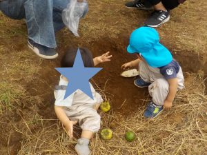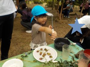 春はたくさんのお花が咲いていたあそびの森ですが、実りの秋となりたくさんの木の実をつけていました。
