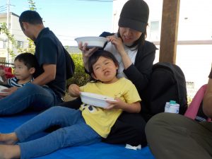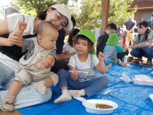 おうちの人と一緒に外の気持ち良い風を感じながら食べるカレーは特別だったようで、「美味しいね!」「いっぱい食べちゃった!」と会話を楽しみながらたくさん食べていた子どもたちでした。