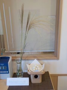 10月の室内装飾は【十五夜】をテーマに、ススキとお月見団子を飾りました。