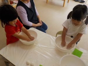 気に入ってくれたようで、翌日には玄関のお団子を持って登園する子もいましたよ。