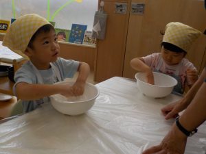 今年はつき組、そら組で「お月見団子作り」を行ないましたよ。