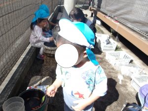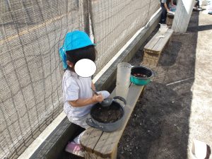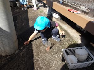 お花や葉っぱに触れて自分のイメージした事を遊びの中に取り入れ、様々な道具も使って自由に表現する事を楽しんでいました。