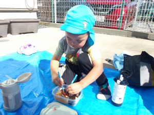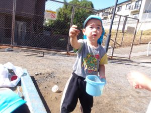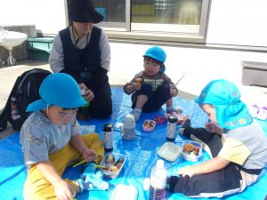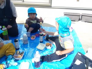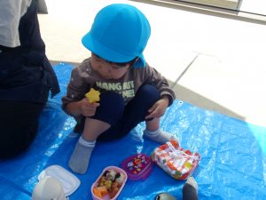 今回は近くの公園で遊んでから、保育園のテラスでお弁当を食べました。
