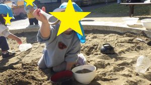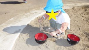 砂遊びを通して砂の感触を楽しみ共有したり、子どものイメージを汲み取ってやり取りをしたりしていく中で子どもの気づきに寄り添って関わっていきたいです。