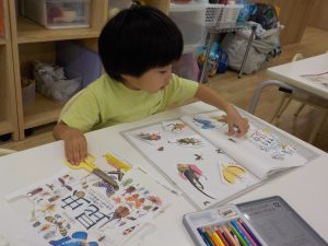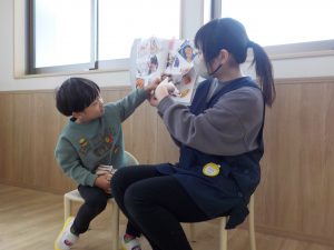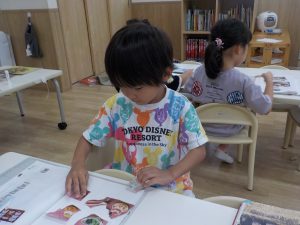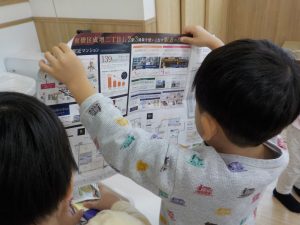 11月のひかり組の保育参観では、スクラップブックの発表会を行いました。始めた頃はチラシの中から好きな物や集めたい物を選んでいた子どもたちでしたが、保育者との関わりを通して、徐々に『分類する』という姿が見られるようになりました。