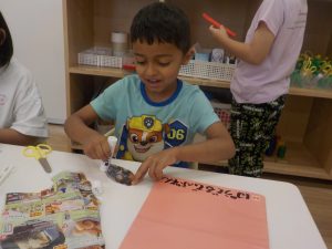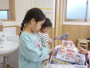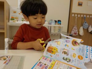 11月のひかり組の保育参観では、スクラップブックの発表会を行いました。始めた頃はチラシの中から好きな物や集めたい物を選んでいた子どもたちでしたが、保育者との関わりを通して、徐々に『分類する』という姿が見られるようになりました。