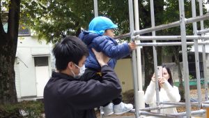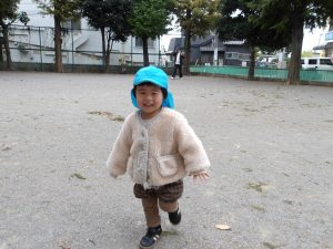 広場を走って、ジャングルジムに登って、体を動かして・・・寒さに負けず体はほっかほか。保護者の方や保育者に見守られながら