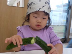 つき組では、お給食に使われている食材に触れる機会を、継続的に作っています。