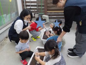 最初はたっぷりのお水が必要なようなのでこれからの水やりを子ども達にお願いしましたよ。