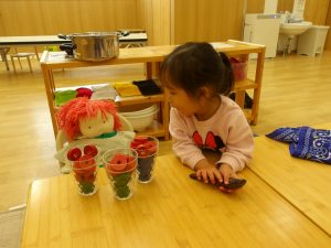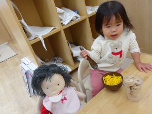 伝えていました。また、一緒におままごとを行い、ご飯を作って食べさせてあげる姿があり、本当のお母さんのように