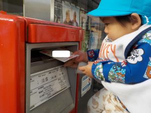 年賀状を投函する時には、ポストに興味津々な姿が見られます。