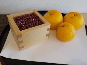 玄関には小豆、ゆずを飾り、給食では「ん」のつく食材を使った行事食が提供されました。