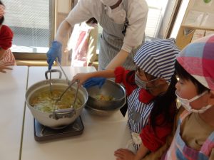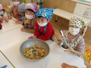 今回はゆめ組(5歳児クラス)のクッキングの様子をご紹介します。