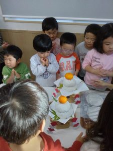 これで、子どもたちが作った手作りの鏡もちを飾り、お正月を迎える準備も整いました♪