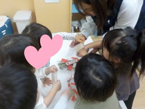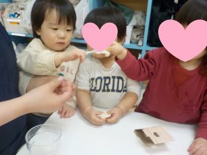 「おもちだよ」のやりとりで「もち」と言葉を繰り返す子もいましたよ。