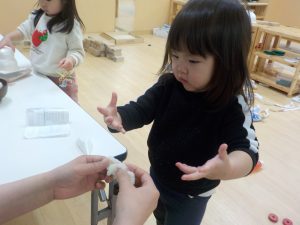 お正月で保育園がお休みだった間にさらにお話が上手になり、家での出来事や過去に経験したことを自分なりに言葉で伝えようとする姿が微笑ましく、成長に感動するばかりの日々です。