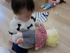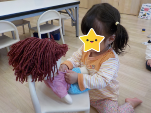 帰りは赤ちゃん人形を連れて帰り、お家でも一緒に過ごす姿もあります。その際はぜひ一緒にお世話遊びをしてみてくださいね。