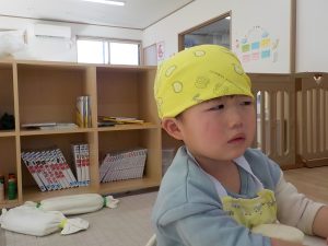 型抜きを終えた後は、調理の先生に渡しに行きました。「○○ちゃんのこれ!」「美味しく作ってね!」と伝え、給食を楽しみにしているようでした。