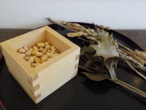 2月3日は「節分」ということで福豆、ひいらぎ、豆がらを玄関に飾りました。