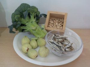 今月の室内装飾では「大豆、ブロッコリー、ふきのとう」を用意しました。