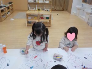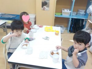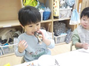 日本の伝統行事に、子どもたちが親しみやすい形で触れることが出来た一日でした。翌日連絡帳に、ご家庭でも色々な形で節分を楽しんだことがかかれており、子どもたちからも「鬼きた」「豆投げた」とお話してくれましたよ。