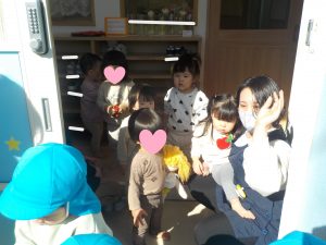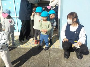 豆を投げるそら組さんの様子が気になり、後ろで覗き込むようにつき組さんも見ていました。