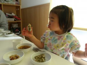この日は給食も節分にちなんで恵方巻が出ました。
