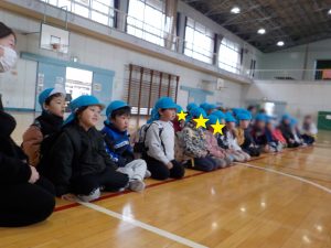 まずは、体育館で素敵な歓迎会を開いてくれた小学一年生のお兄さん、お姉さんたち。