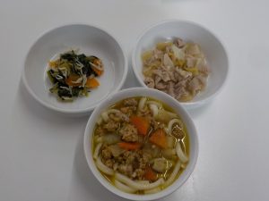 10日・24日提供:カレーうどん、豚肉と白菜の味噌炒め、しらす和え