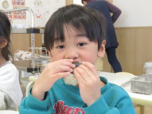 そしてお給食では、節分にちなんで恵方巻をみんなで食べました。