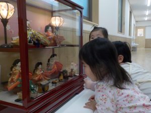 あえて子どもたちの目線に合うように雛人形を飾ると、どのような表情をしているのか、じっと覗き込んでみたり装飾品に目を向ける姿も見られました。