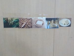 お部屋の中には原材料の大豆や作り方の工程、大豆を使った料理についての写真を貼って紹介します。
