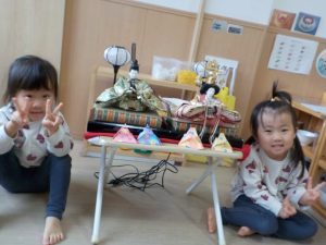 各クラス保育室でひな人形を見られる環境を作り、観察を行っています。