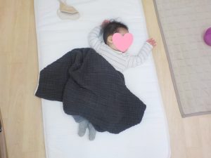 入園したばかりで不安の中安心できる大人ではない入眠は不安がいっぱいだったほし組さん。抱っこやおんぶで入眠し少しずつ心地良さを感じると、今度は布団でトントンして入眠する姿へと変わっていきました。