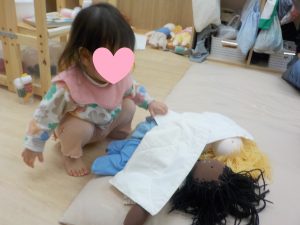 保育園では1人1体赤ちゃん人形を設置しています。