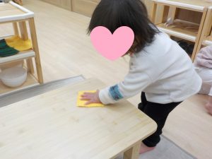 「綺麗になったかな」「ここも汚れてるかな」「ピカピカになったね」等保育者が声を掛けると、嬉しそうに満足するまで遊んでいます。