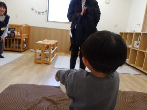 お友だちの姿を見て、一緒にやってみようとする姿や、興味を持ち手を伸ばしてみる姿は、