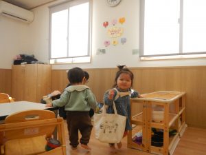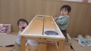 友達の存在にも気づき始め、近づいたり笑い合ったりと同じ空間を楽しむ様子があり、