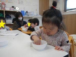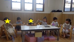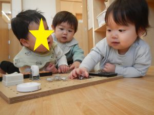 表情がとっても豊かなほし組の子どもたち。喃語や身振りで気持ちを伝える姿を受け止め、やりとりを楽しんできました。