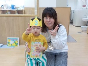 みんなからのお祝いと、カードをもらって嬉しそうにしていた誕生児です。
