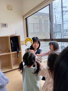 ペープサートを「もう一回やって」と言う子がいたので、誕生会が終わった後も子どもたちが満足するまで一緒に楽しみました♪