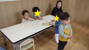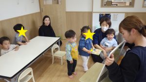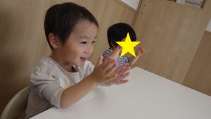 「だれのたんじょう会だったっけ?」と聞くと”自分の!”とみんなが表現し、お祝いの嬉しさをしっかり感じている