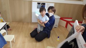 お祝いしてくれているお友達に「みて~」と見せにいく様子も!みんなで共有していました。