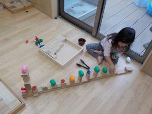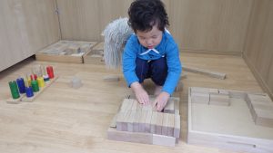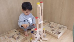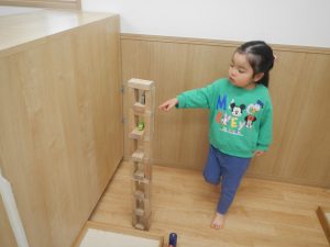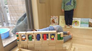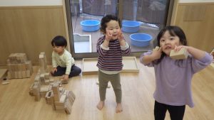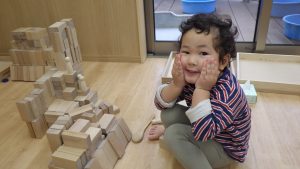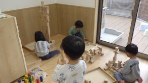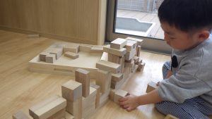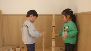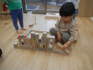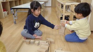 積み木は、どんどん遊び方が複雑になっていき、子ども同士で「こうしてみようか」「じゃあ、ここに積んでみるね」と